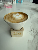 A unique, artisan-designed pottery coffee cup with a capacity of 5.5 ounces. Its distinctive design and the sexy Barista logo on both sides of the cup holder make it a must-have when guests visit. It’s sure to spark conversations.